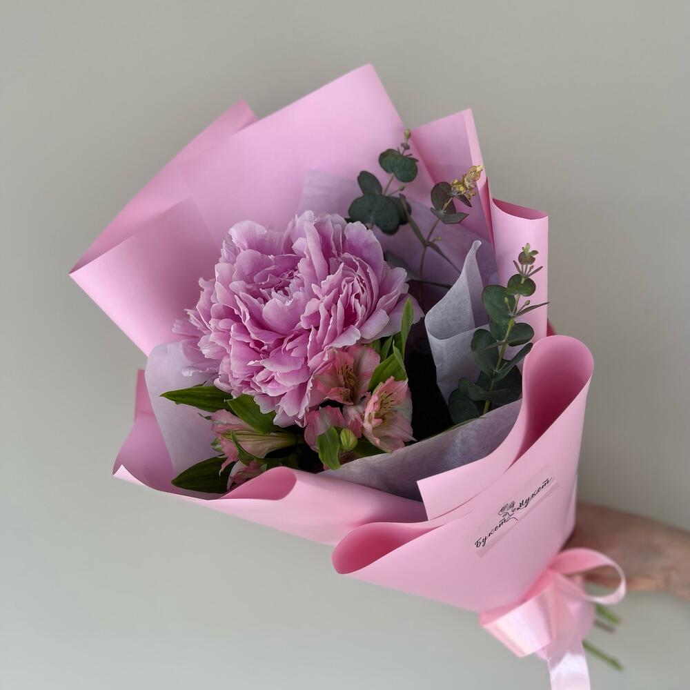 Букет «Иностранец» (пион, альстромерия, эвкалипт) в Гавриловом Посаде