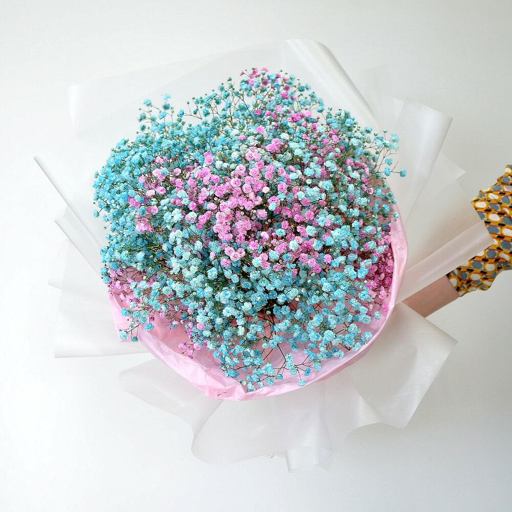 Букет гипсофилы цветной в оригинальной упаковке в Гавриловом Посаде